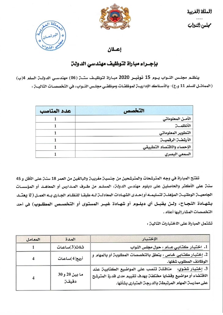 مجلس النواب مباراة توظيف 06 مهندسي دولة آخر أجل 15 اكتوبر 2020