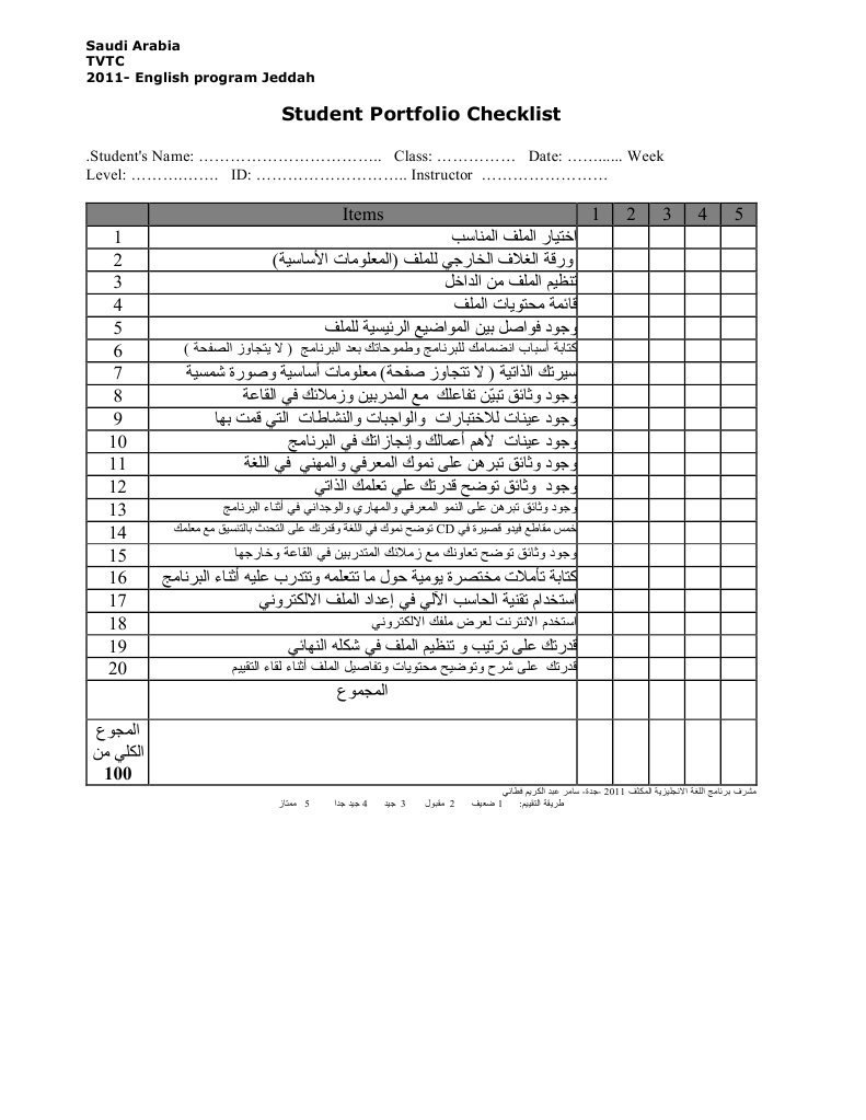 نموذج تقييم ذاتي لملف الطالب
