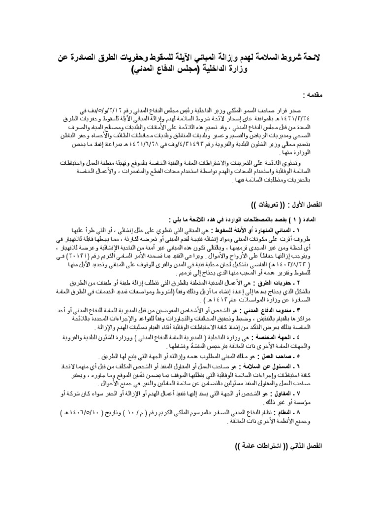تنفيذ إشتراطات السلامة في جميع مباني ومشاريع أشغال